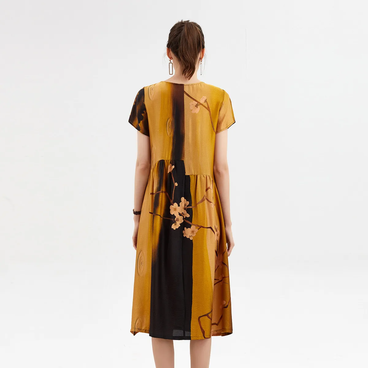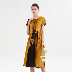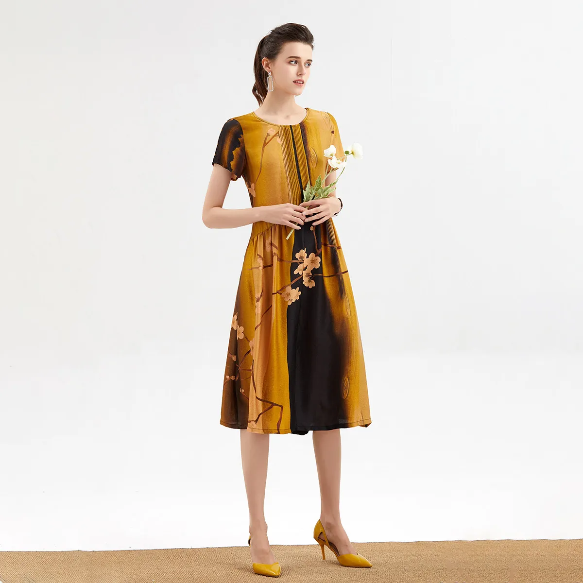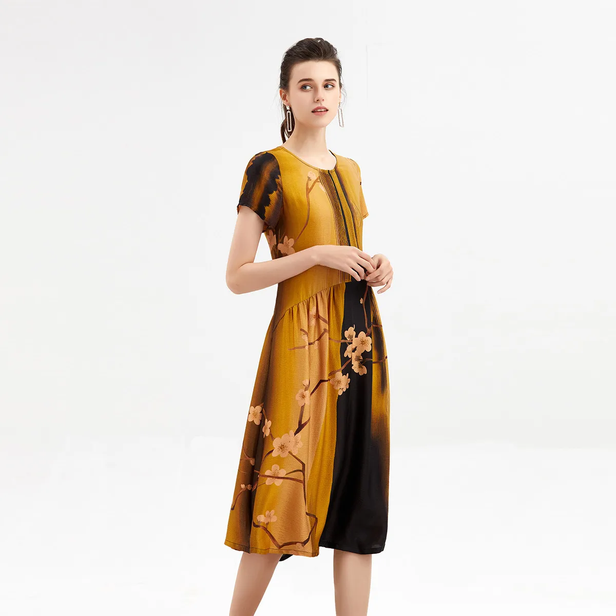 2021 Fashionable and elegant Pleated MIDI Dress For Middle-aged Women silk A-line skirt6663352130