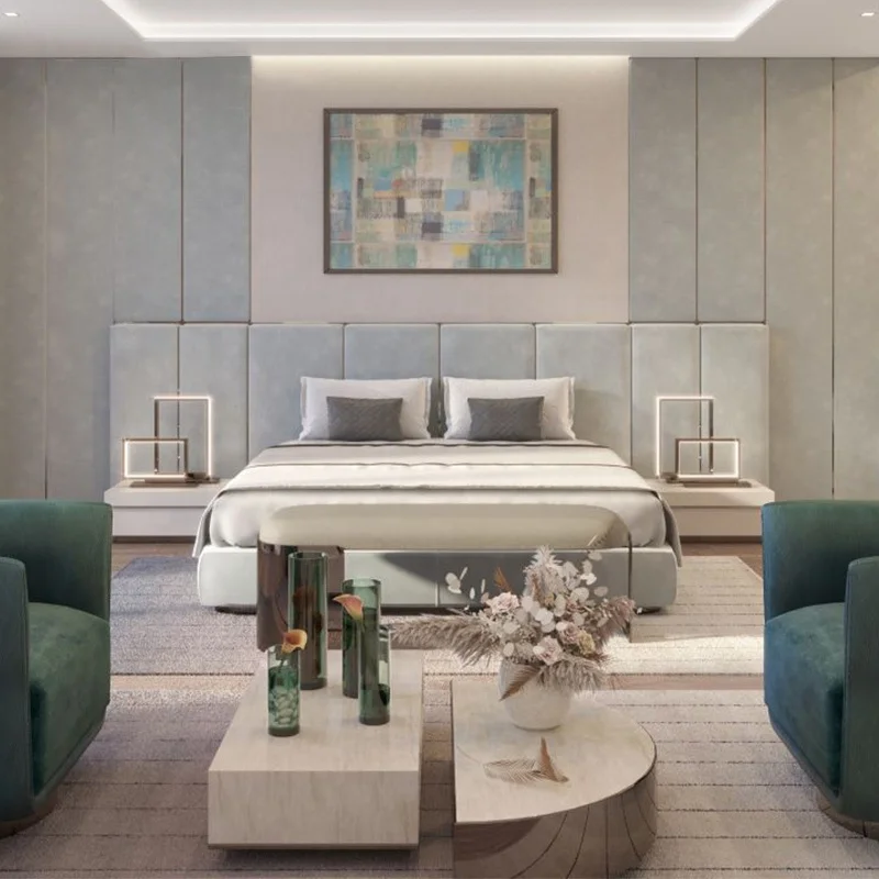 The bedhead is soft to the touch for a comfortable backrest and the ensemble was designed to offer specialised support and unparalleled comfort for an undisturbed sleep every night