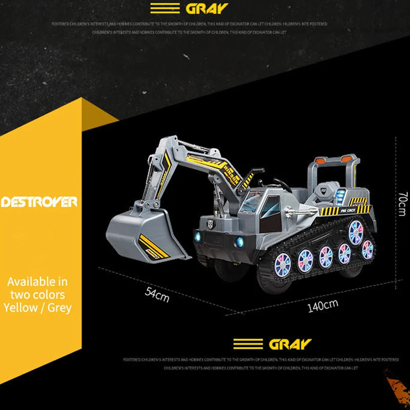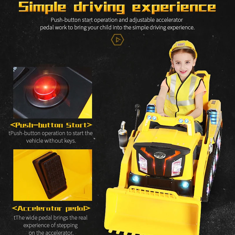 Function: | 1. With three speed options( 2.1km/h, 2.5km/h, 2.8km/h) 2. Lighting 3. English songs and horn sound, volume adjustment 4. USB interface 5. Storytelling and English learning 6. Manually operated bucket 7. Equipped with tool box and shovel |